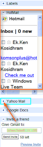 You access your Hotmail or Yahoo! Mail account from your GMail web page. Read and send Hotmail emails without leaving GMail! (ท่านสามารถเข้า ใช้ Hotmail หรือ Y! Mail ของท่านได้ จากหน้า GMail เว็ปได้แล้ว โดยสามารถอ่านและส่ง mails ได้ โดยไม่ต้องออกจาก GMail!)